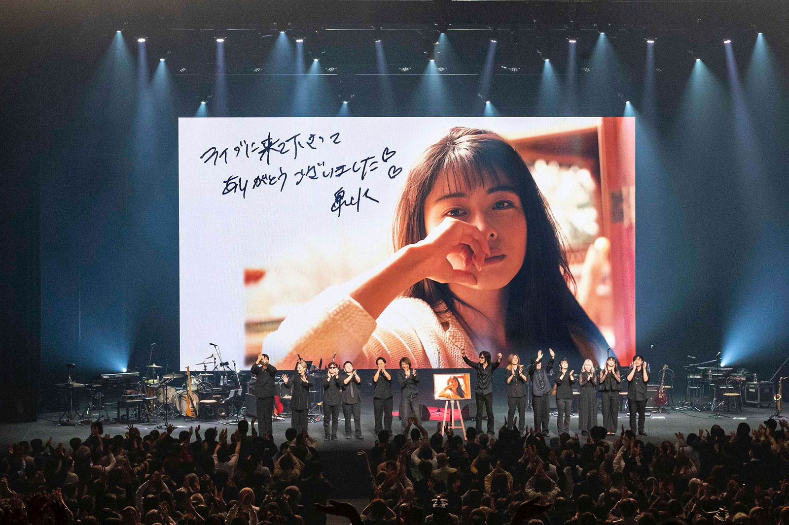 プレミアムチケットとなった今回のライブでは、序盤にステージ全面を覆う紗幕に坂井泉水の映像を映し出し、その内側にバンドを配するという初めての演出が採り入れられました。坂井泉水の歌声と映像に一層聴き入り、見入るライブだということが示されたわけです。